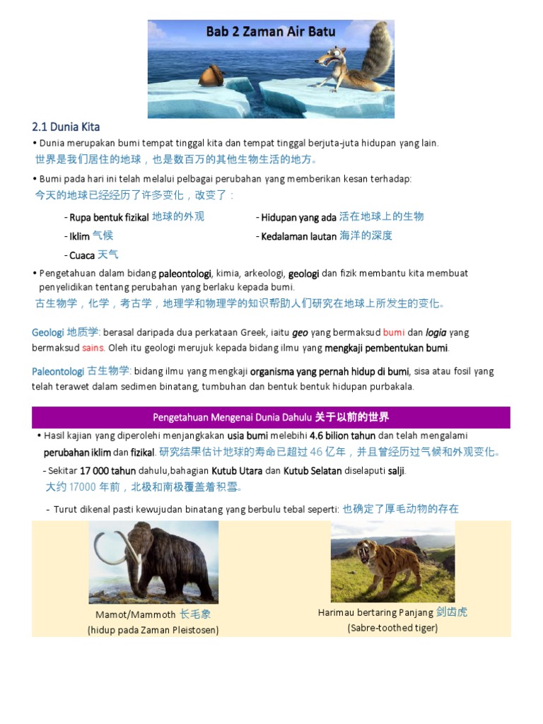 Bumi pada masa itu dikenali sebagai zaman air batu yang wujud dalam garis masa antara 2.5 juta tahun hingga 10,000 tahun. Zaman air batu adalah tempoh suhu menurun dalam jangka masa yang lama dalam iklim bumi yang seterusnya menyebabkan peningkatan dalam. Definisi zaman air batutempoh di mana suhu iklim bumi turun dan mengakibatkan fenomena pembentukan air batu di kutub dan glasier di gunung (buku teks sejarah, tahun 4)dianggarkan bermula antara 2.6 juta hingga 3.5 juta tahundahulu. Zaman kebudayaan batu tua dinamakan dengan istilah paleolitikum. Bab 2 zaman air batu (2.2 tahap zaman air batu) 中一历史:第二课 冰川世纪 (2.2 冰川时代阶段 ). Download zaman air batu pdf for free. Jom kita kenali sejarah zaman air batu. Zaman air batu merangkumi standard pembelajaran. Sejarah tahun 4 {zaman air batu}maksud zaman bumi di.) pengglasieran: Guru cuba mengaitkan isi pelajaran dengan meminta murid menjelaskan maksud zaman air batu. Maksud zaman air batu other contents: Menyatakan maksud zaman air batu. Dianggarkan bermula antara 2.6 juta hingga 3.5 juta tahun dahulu.